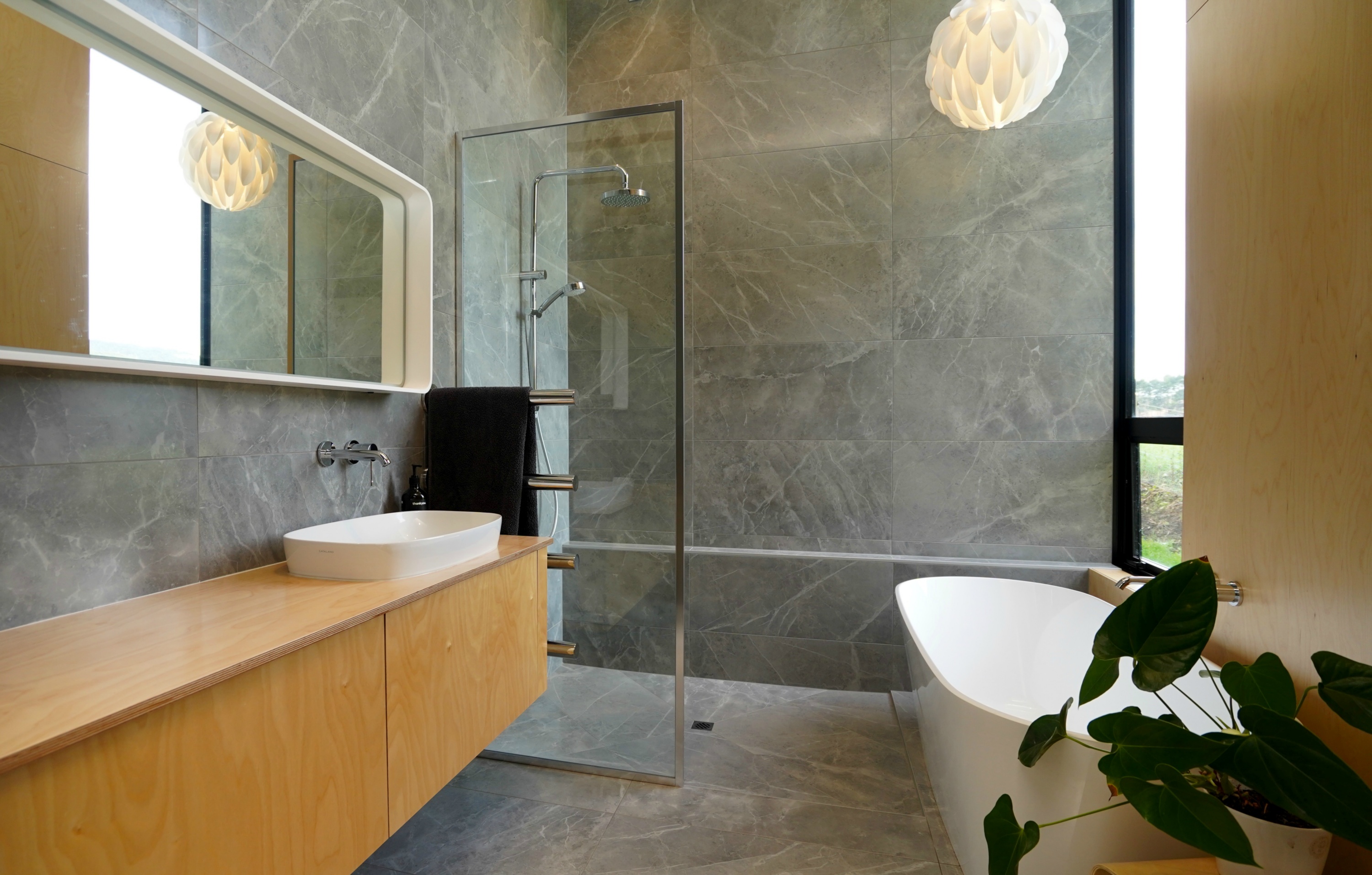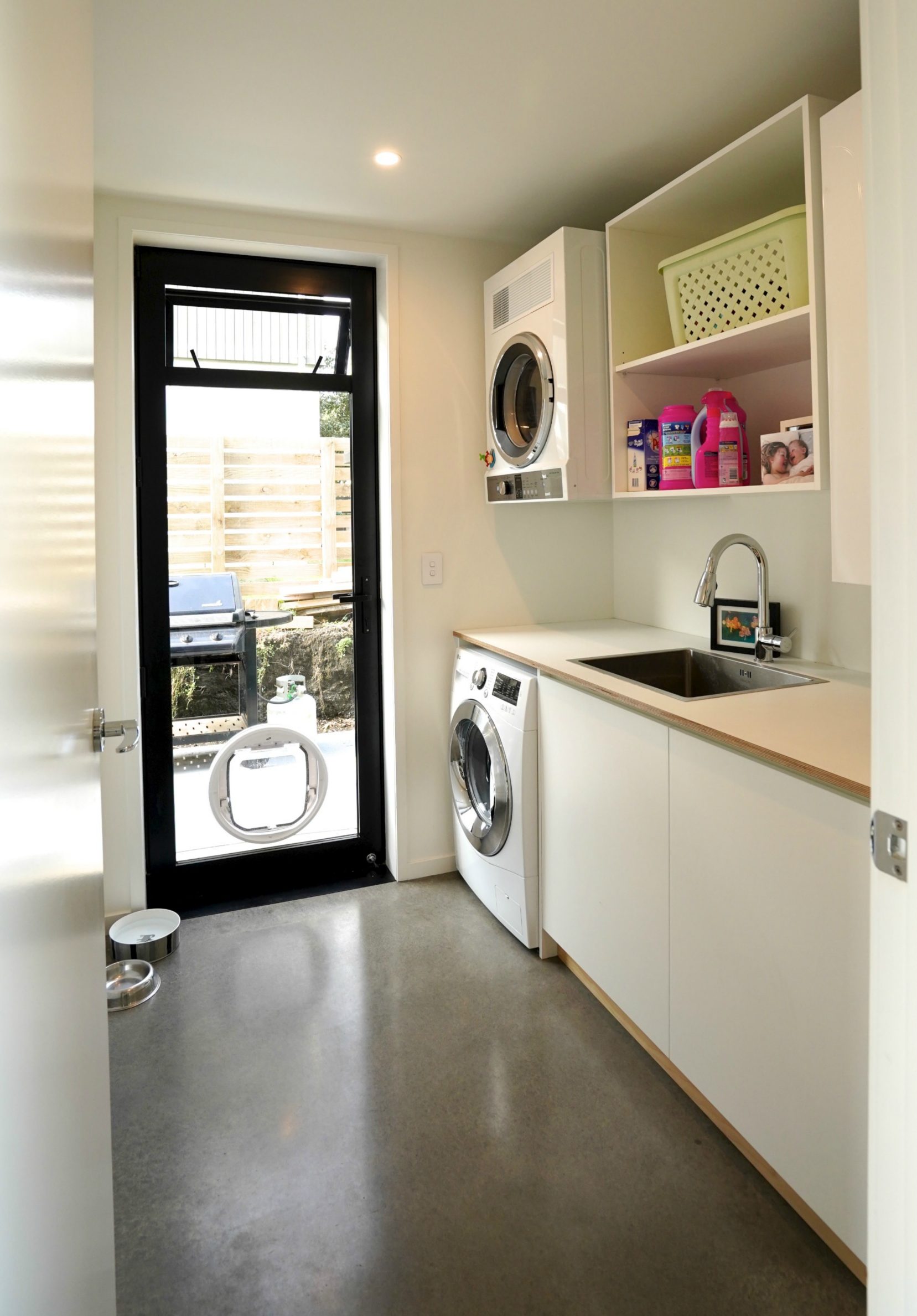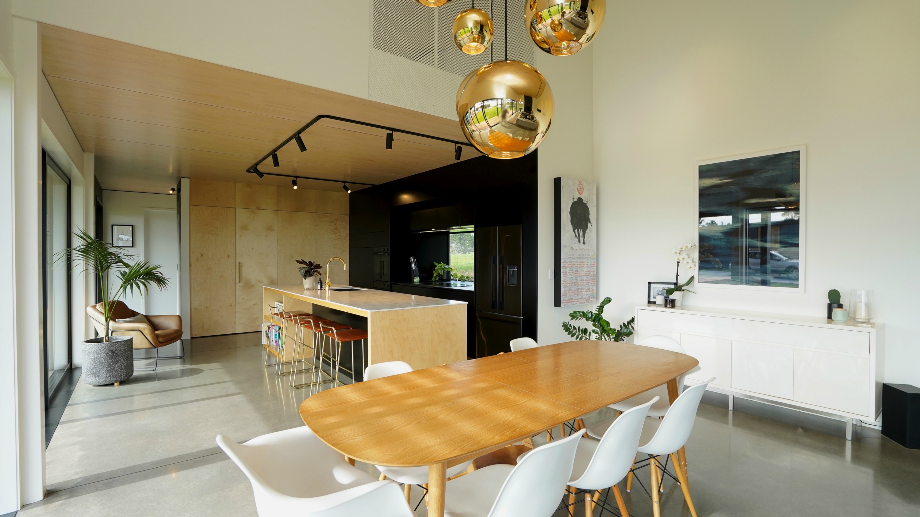 Kitchen In manufactured this stunning varnished birch ply and black painted kitchen to meet the highest quality specification. Custom joinery featured throughout the home including entertainment unit, vanity and laundry all designed by the client to be create her exact vision of her dream home.