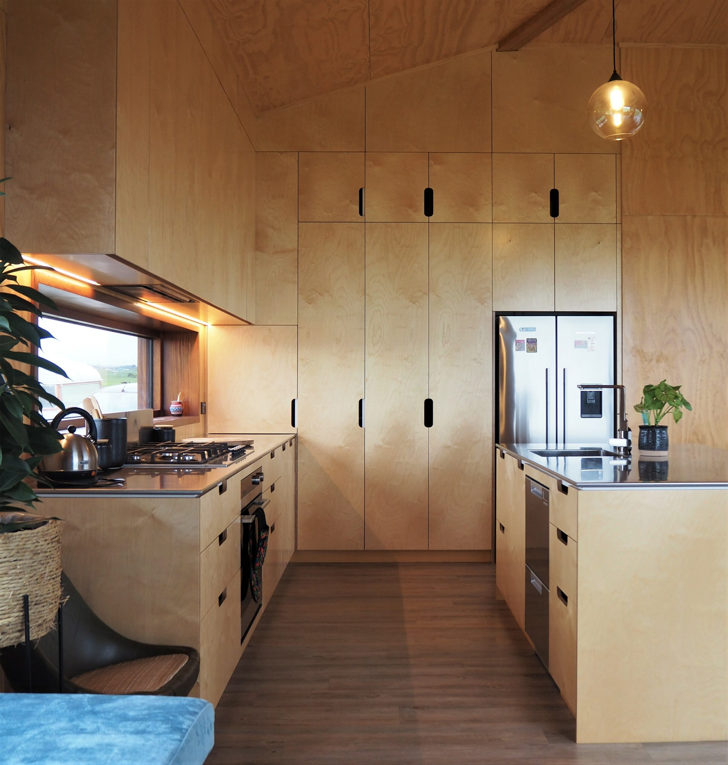 Kitchen In is excited to present this warm, inviting birch ply kitchen with a stainless top and negative space details. The kitchen design was a collaboration between Boon Architects and Kitchen In to create a very special place by the ocean for a family to spend quality time together.